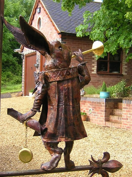 free-standing sculpture inspired by Sir Tenniel's white rabbit