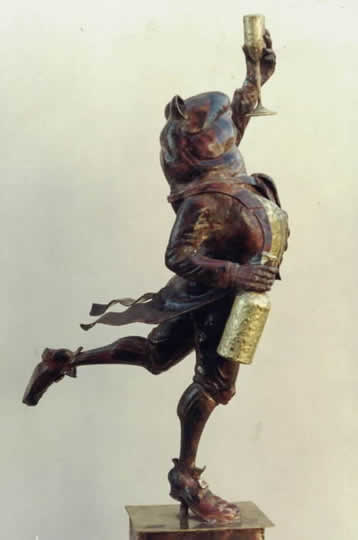 A copper sculpture of Toad of Toad Hall. This sculpture was