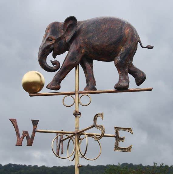 WEATHERVANE OF AN ELEPHANT WITH GOLDEN BALL