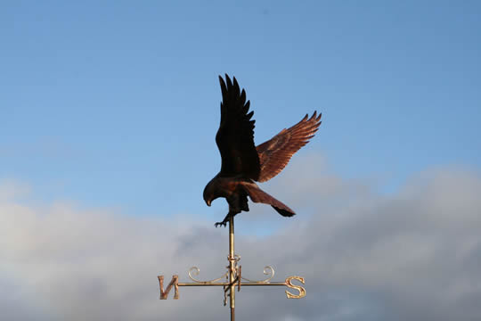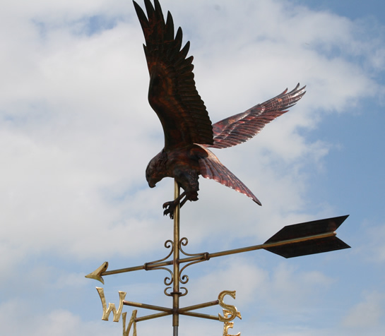copper weathervane features our Montagu's Harrier Hawk over a traditional