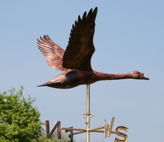custom repousse copper weathervane of a swan in flight. This weathervane